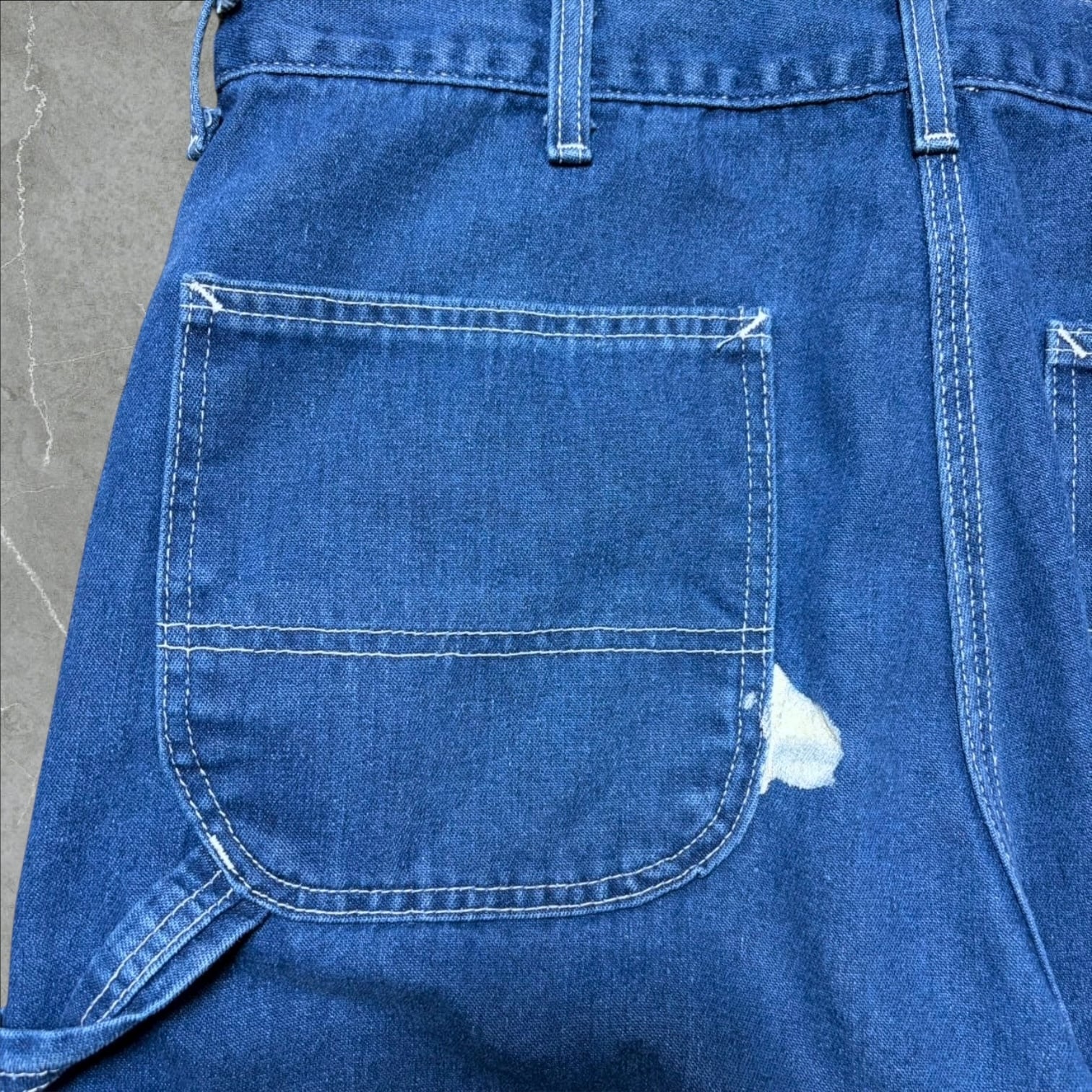 こちら、写真にございますように膝の少々の色落ちやヒップ部のペンキ跡、ございます。