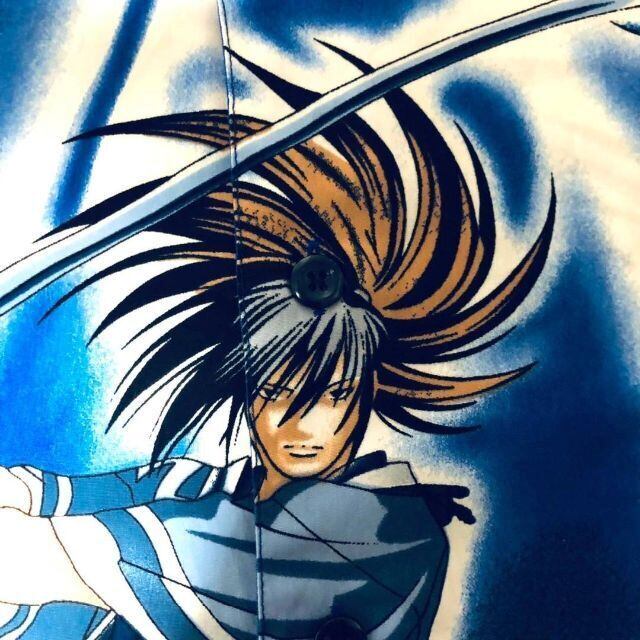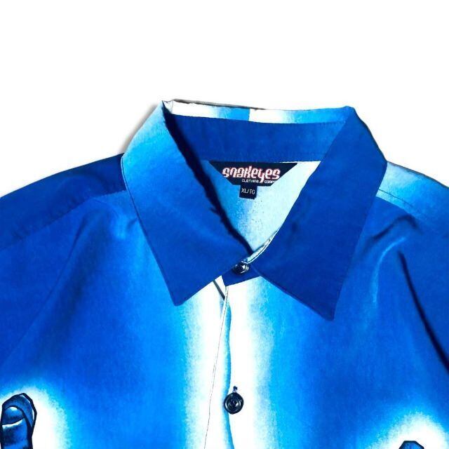 Snakeeyes 半袖 チカーノシャツ XL ブルー サムライ柄 柄シャツ オーバーサイズ ストリート スケーター ヒップホップ 半袖シャツ B系 SK8 ビッグシャツ アロハシャツ