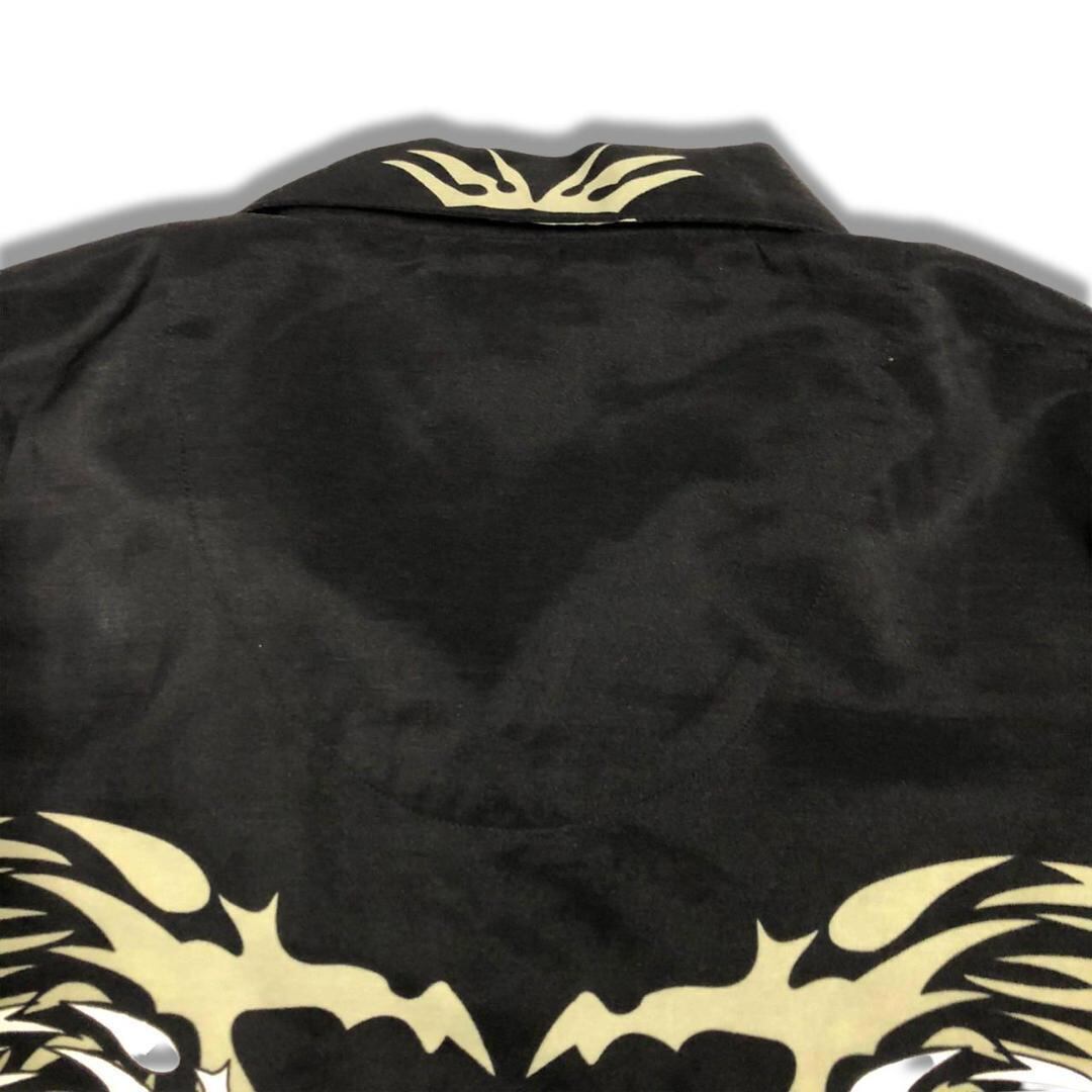 No Boundaries チカーノシャツ XXL ブラック トライバル柄 柄シャツ オーバーサイズ ストリート スケーター ヒップホップ 半袖シャツ B系 SK8 アロハシャツ 和柄 開襟シャツ オープンカラーシャツ