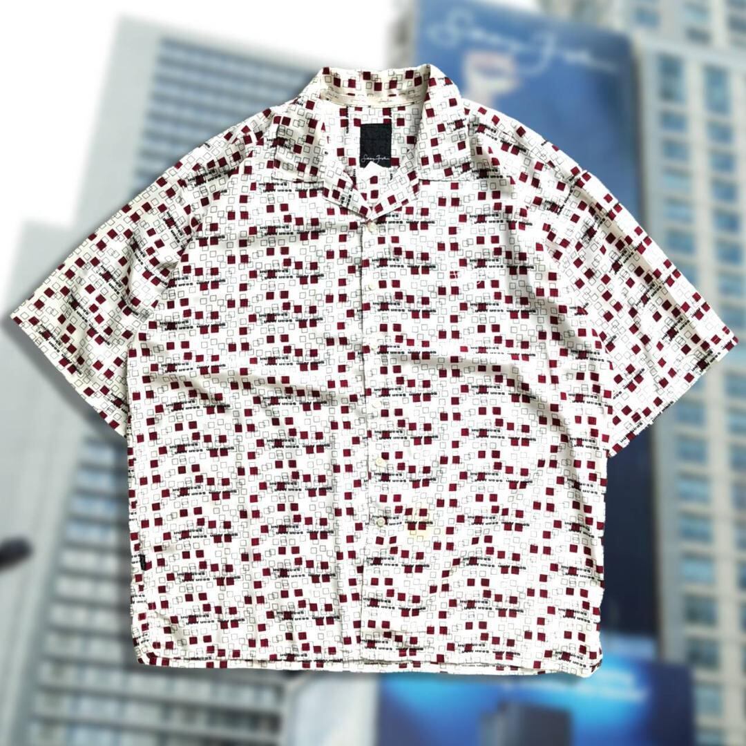 00s ショーンジョン 半袖 柄シャツ ホワイト XXL Sean アロハ ストリート HIPHOP B系 BBOY オープンカラーシャツ 開襟シャツ Y2K 90s チカーノシャツ ポリシャツ