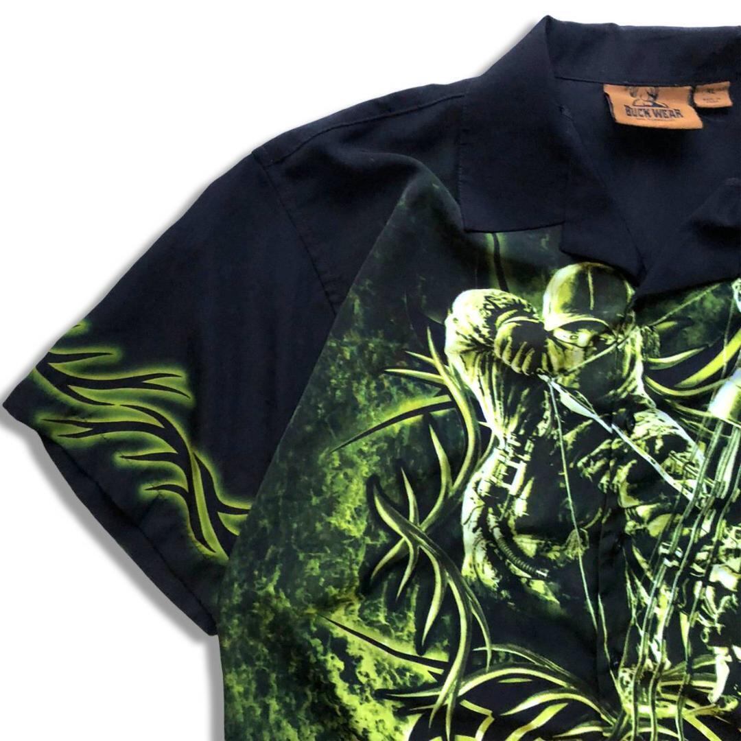 Buck Wear 半袖 チカーノシャツ XL ブラック ハンター柄 柄シャツ オーバーサイズ ストリート スケーター ヒップホップ 半袖シャツ B系 SK8 オープンカラーシャツ 開襟シャツ