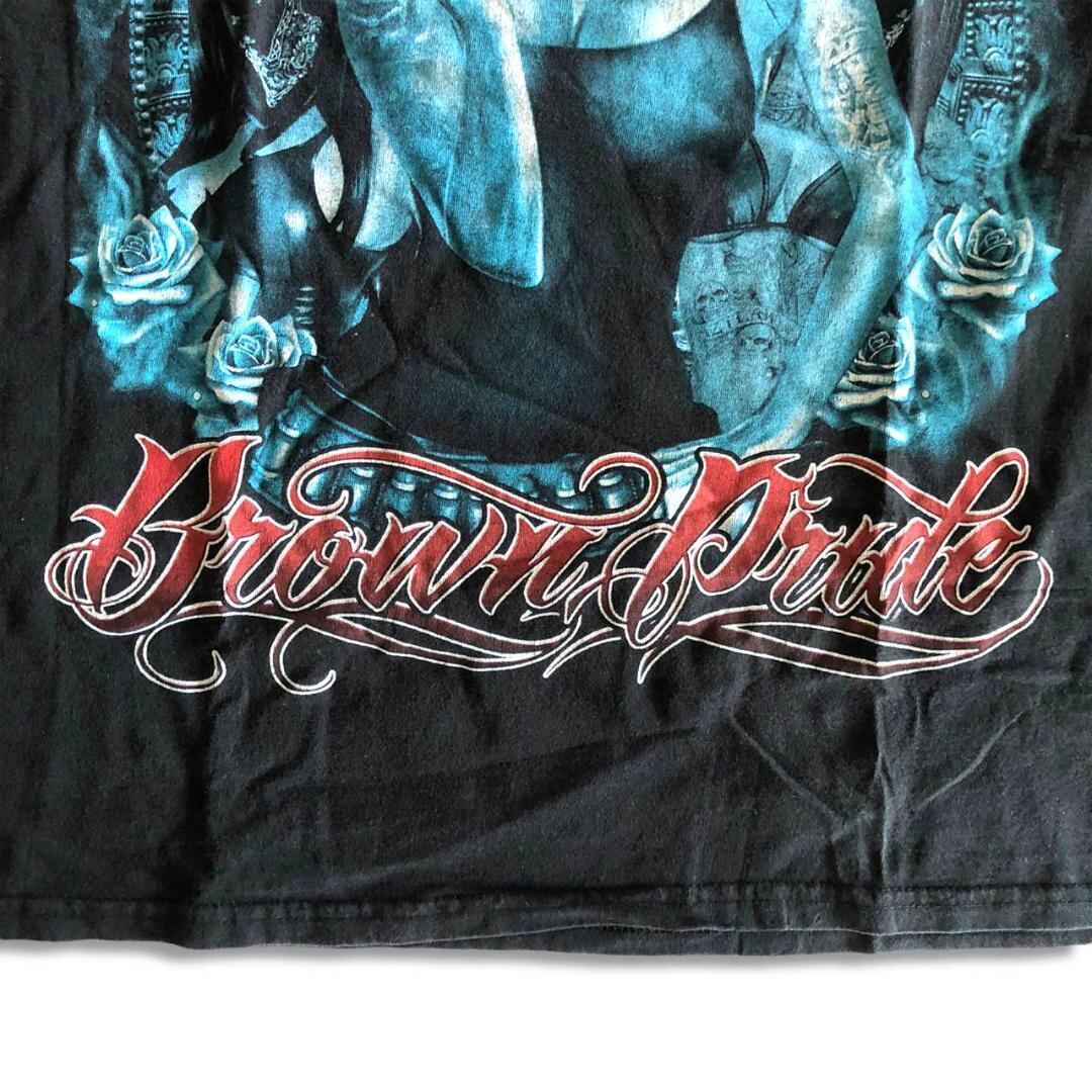 00s Brown Pride タトゥー柄 Tシャツ ブラック XL 西海岸 ウエストサイド WESTSIDE チカーノ ウェッサイ ローライダー B系