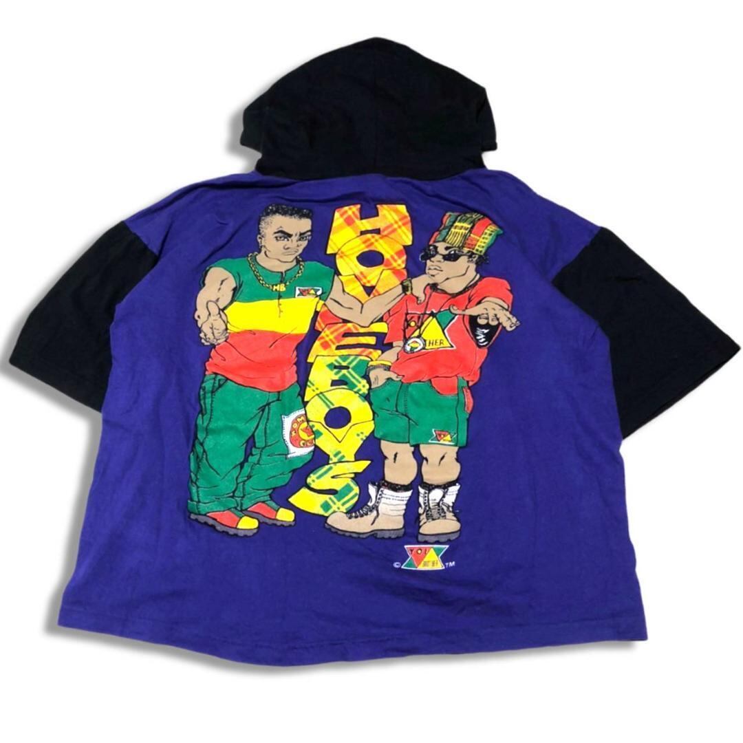 90s YO! Brother フード付き Tシャツ パープル XL B系 HIPHOP BBOY NEW SCHOOL ニュースクール AACA CROSS COLOURS クロスカラーズ 40acres