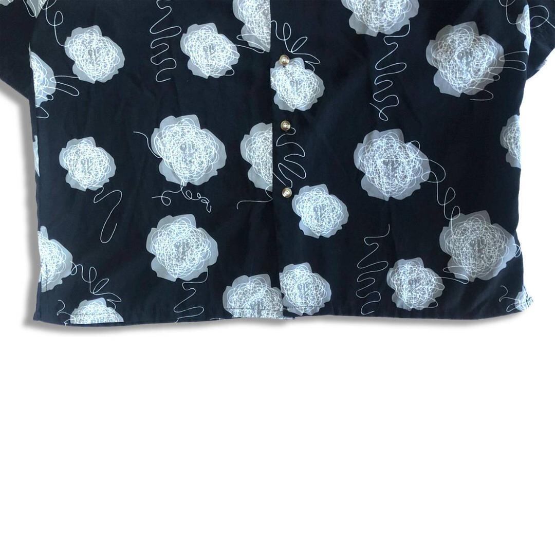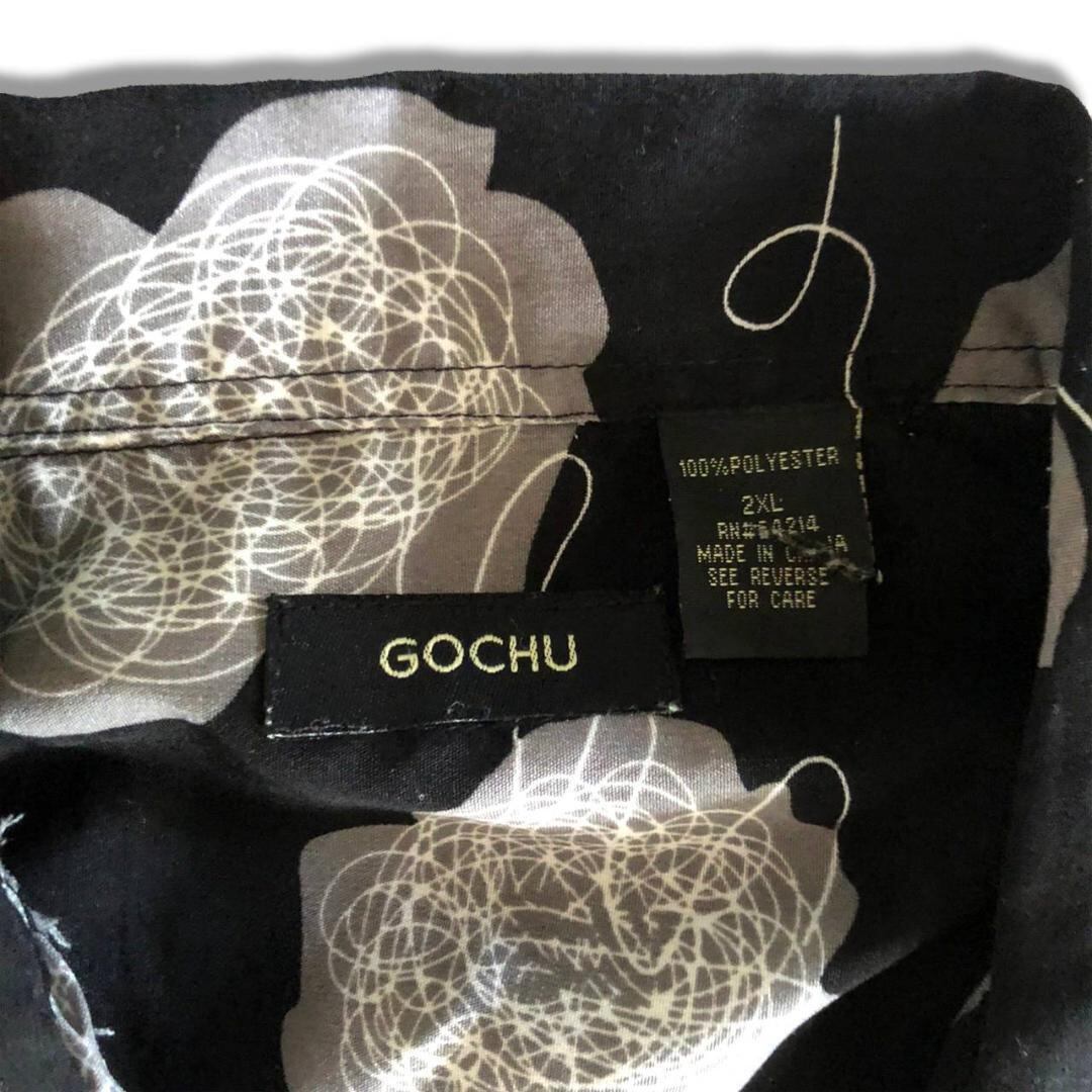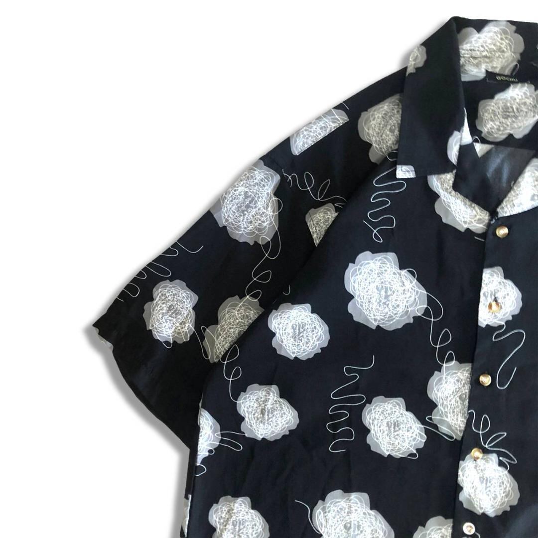 90s-00s Gochu ビンテージ オープンカラーシャツ ブラック 2XL 黒 総柄シャツ 柄シャツ 幾何学柄 アート柄 ポリシャツ 夏 オーバーサイズ