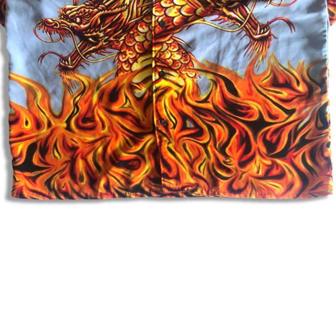 00s MT:2 チカーノシャツ L ブラック ドラゴン柄 フレイム柄 柄シャツ オーバーサイズ ストリート スケーター ヒップホップ 半袖シャツ B系 アロハシャツ