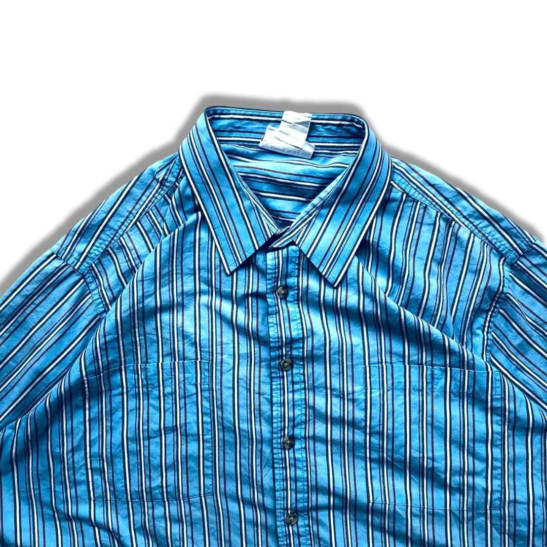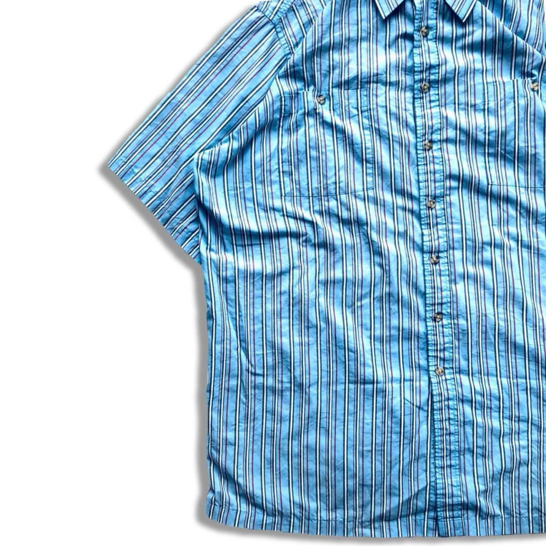 キングサイズ 半袖 ストライプシャツ ネイビー XL KINGSIZE ビッグシャツ ストリート HIPHOP B系 オーバーサイズ ビッグサイズ Y2K 90s SK8