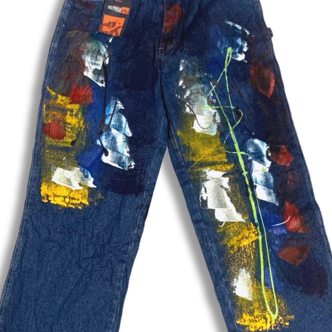 職人が手作業でペイントしており一点一点、表情の違うペンキ加工のデニムパンツ。