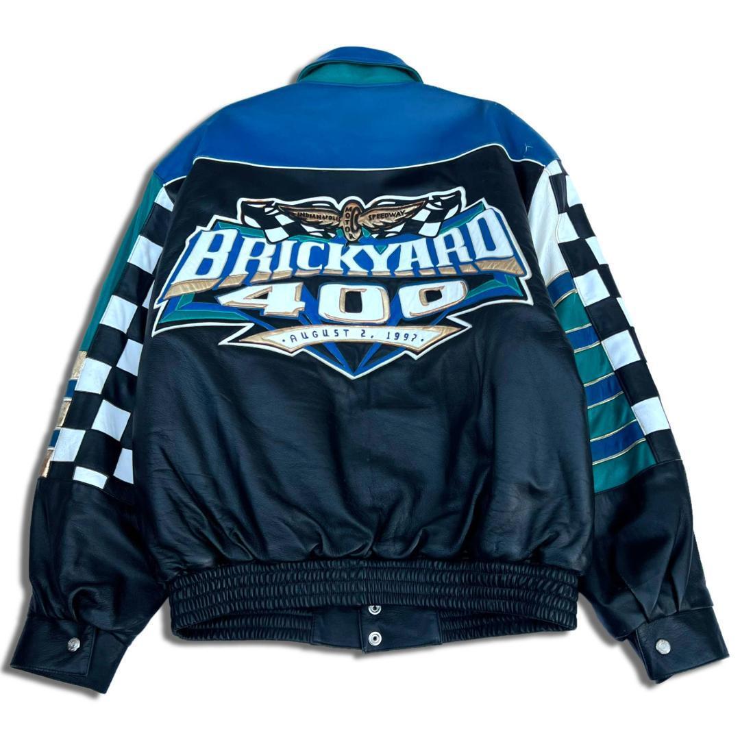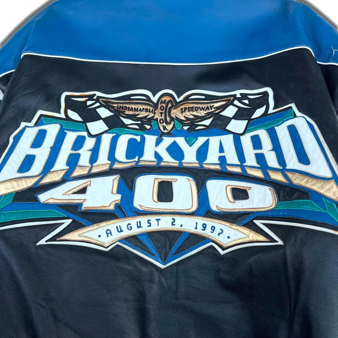 90s USA製 ジェフハミルトン レザー レーシングジャケット L Jeff Hamilton 刺繍 レザージャケット Brickyard 400 97's ストリート B系 SK8 オールレザースタジャン