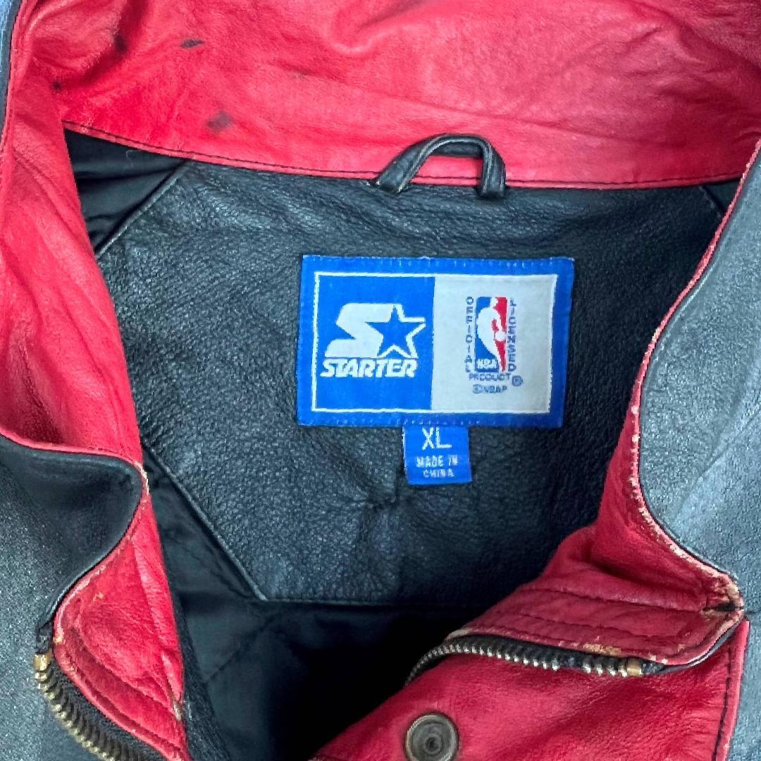 90s スターター NBAレザージャケット XL ブラック シカゴ・ブルズ Chicago Bulls オールレザースタジャン 刺繍 ストリート系 ジョーダン