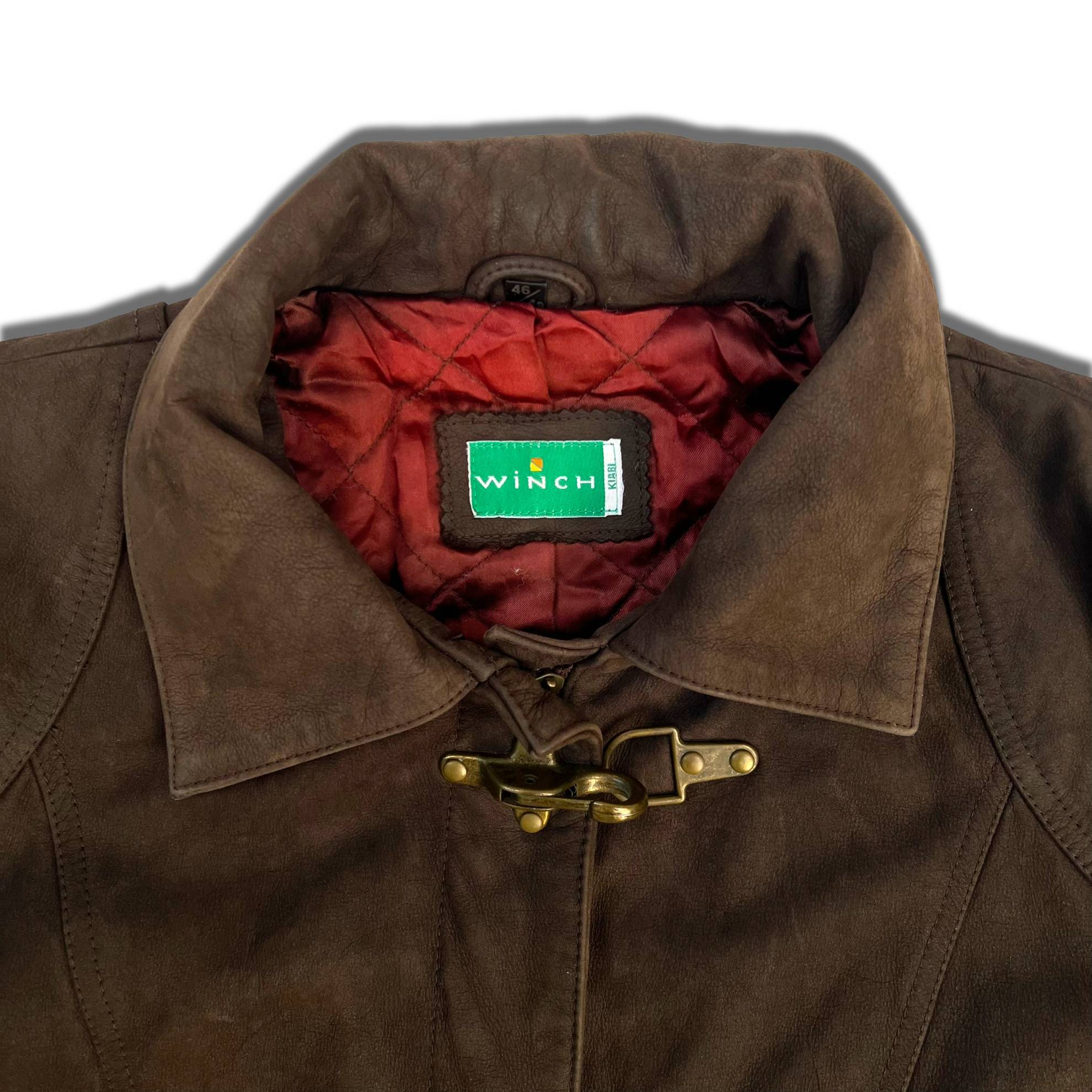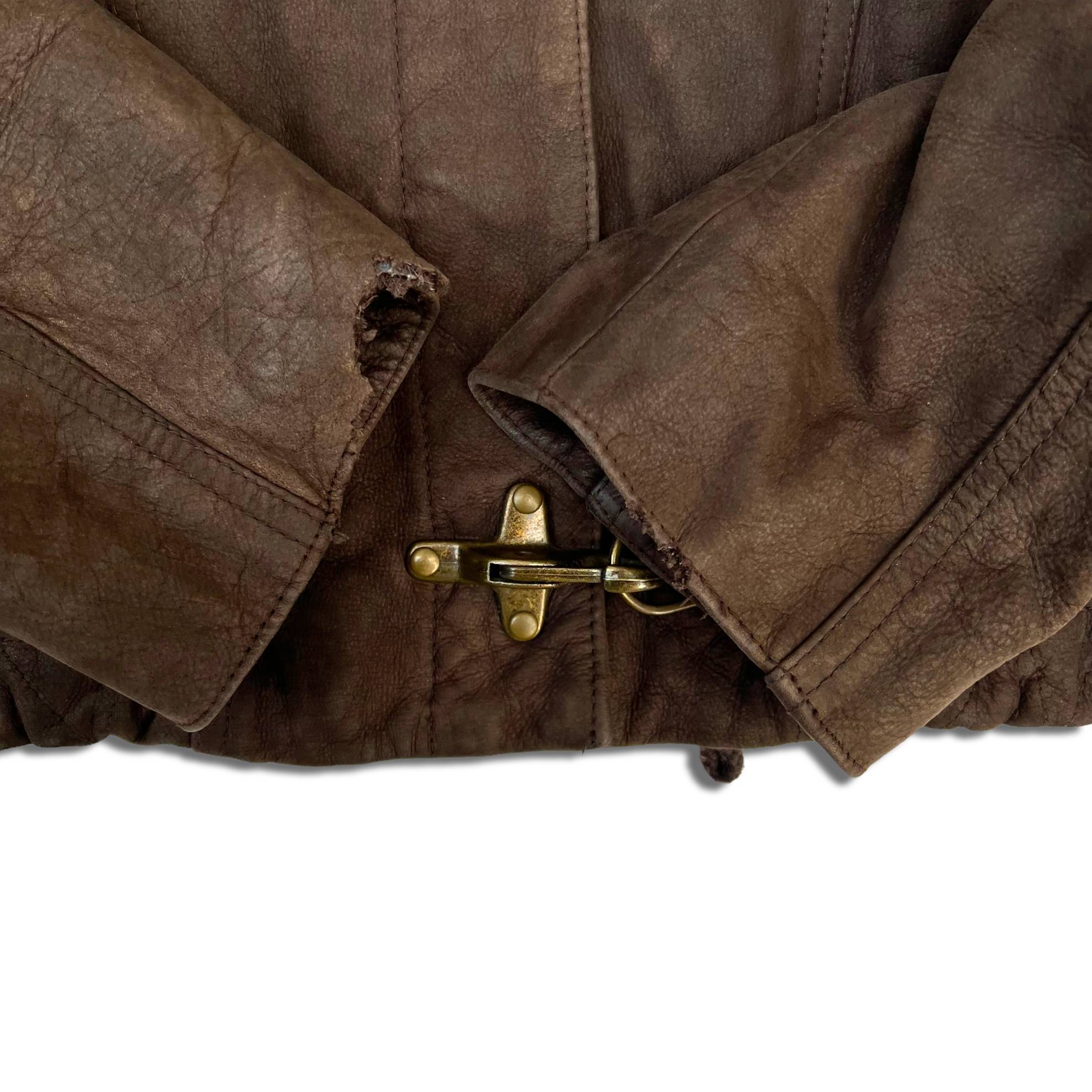 ユーロビンテージ ショート丈 レザー ファイアーマンジャケット 46/48 XL ブラウン ファイヤーマンジャケット レザージャケット 革ジャン 短丈 レザーブルゾン レザブル