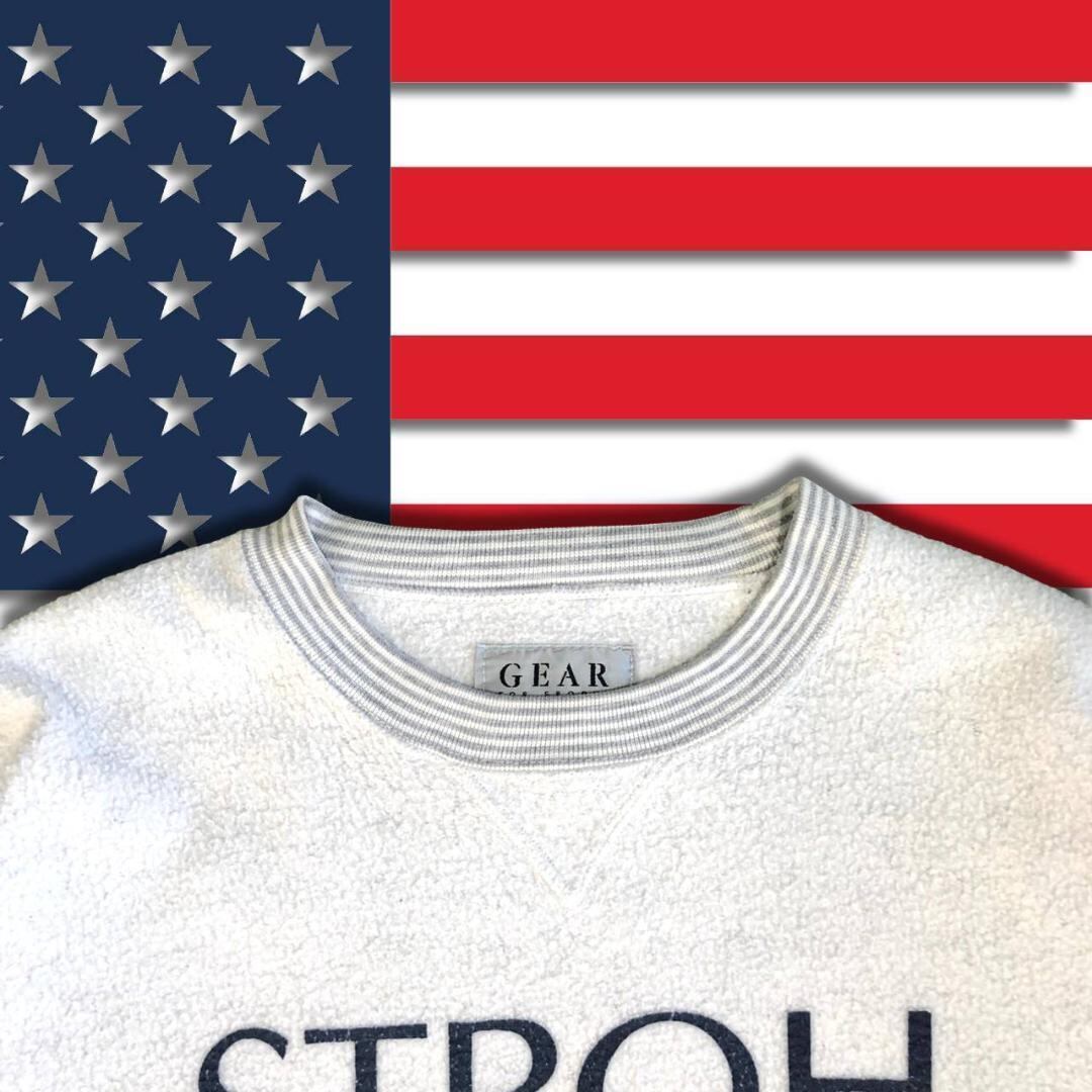 90s GEAR 表裏 クルーネックスウェット L ヘザーグレー エンブレムロゴ ストリート 古着 トレーナー 企業ロゴ Stroh Beer 個性派デザイン