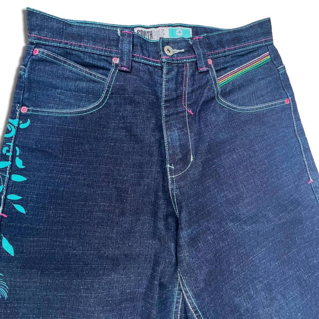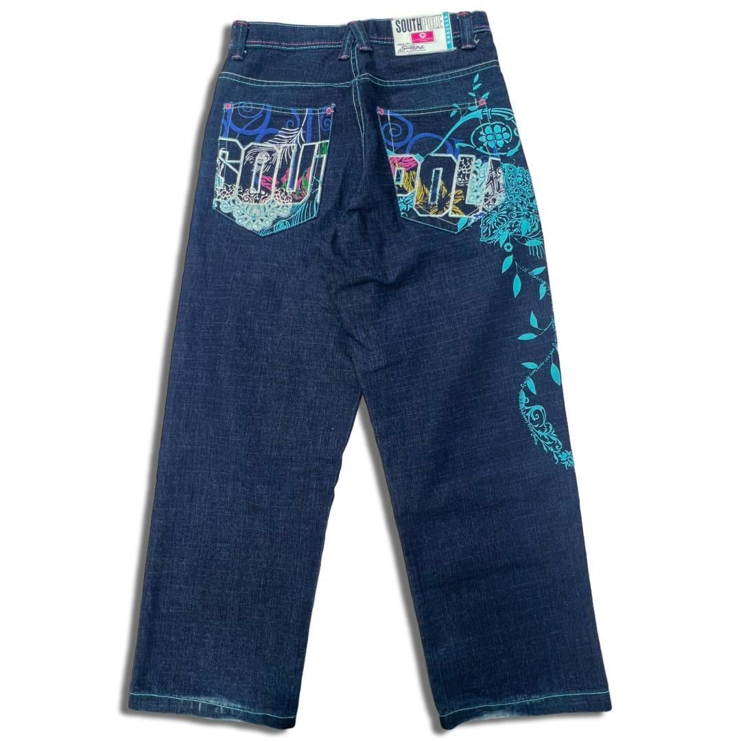00s サウスポール 派手柄 麻 バギーデニムパンツ 32 SouthPole バギーパンツ ワイドパンツ ストリート B系 HIPHOP 春夏 麻ジーンズ 90s Y2K 太パン