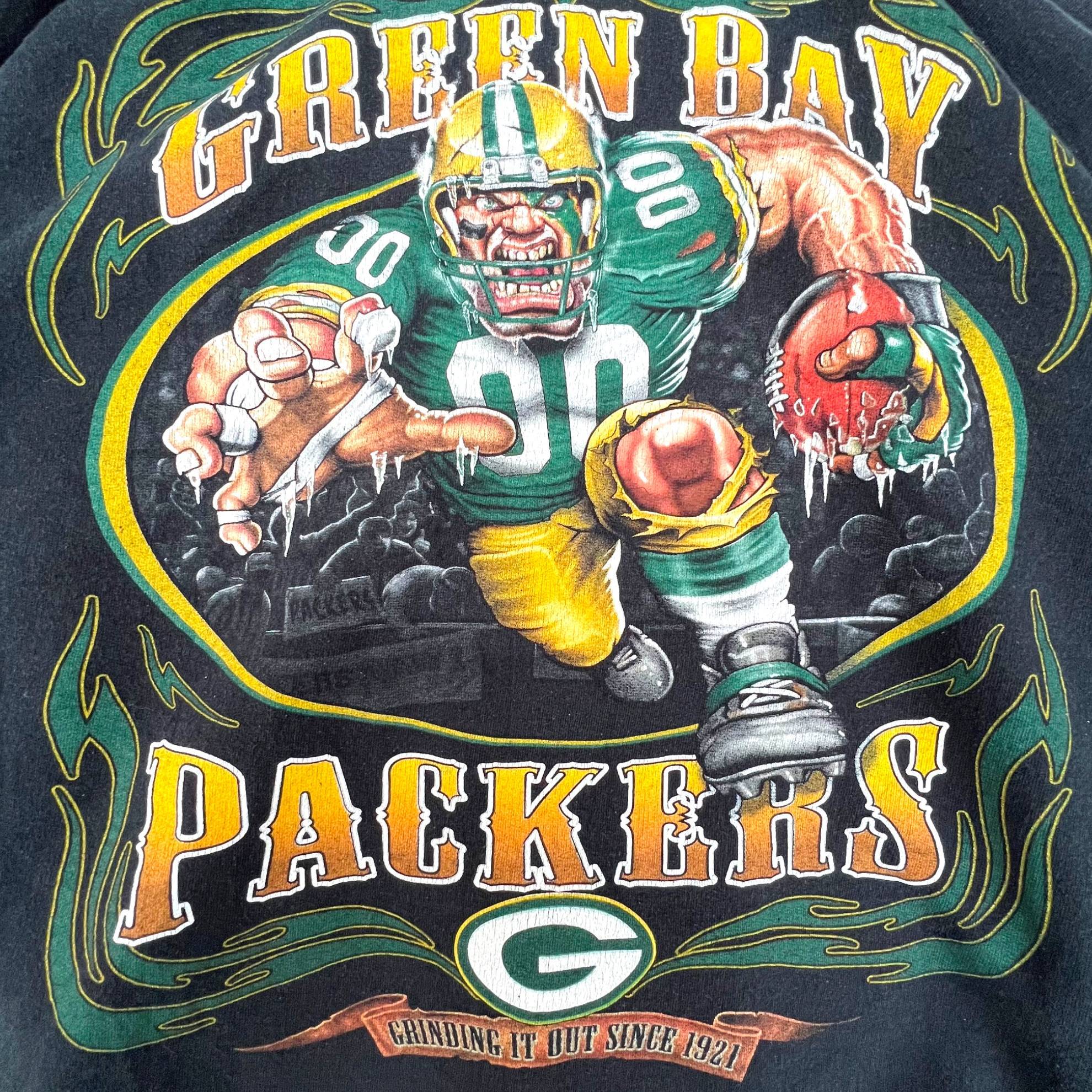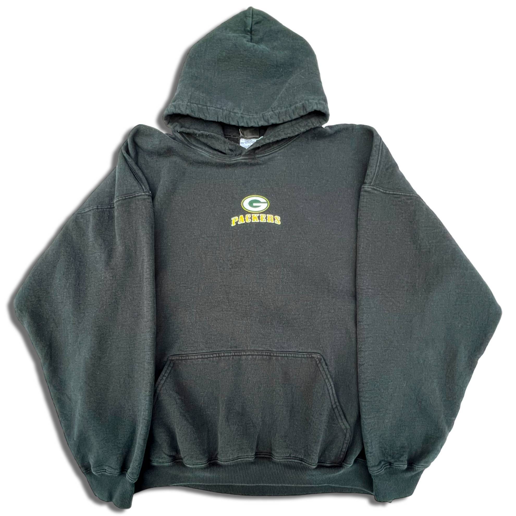 00s NFL プルオーバーパーカー 2XL ブラック グリーンベイ・パッカーズ Green Bay Packers ストリート 古着 バックプリント オーバーサイズ ビッグサイズ 大きなサイズ ビッグシルエット