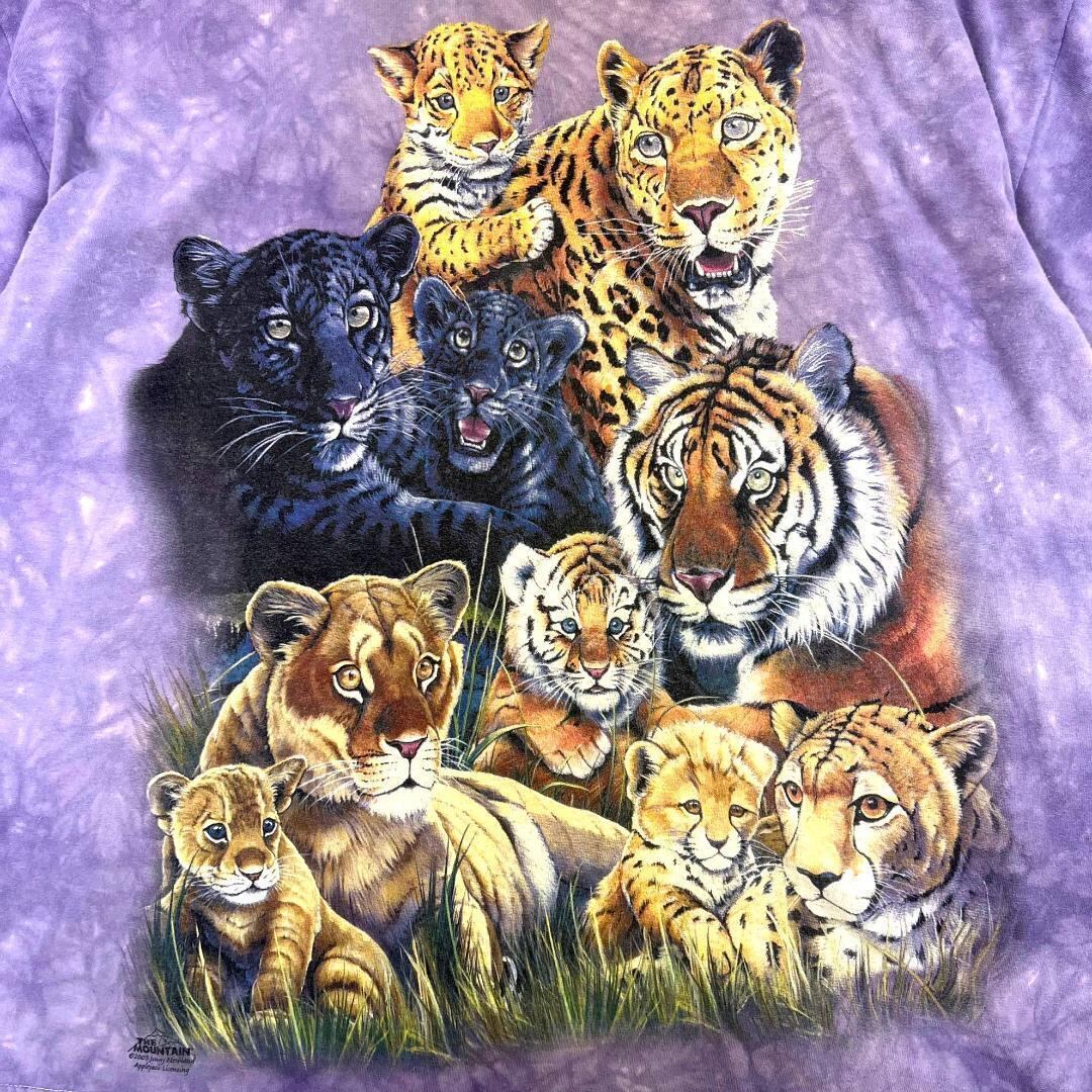 ザ マウンテン ネコ科 アニマル柄 タイダイ染め Tシャツ 2XL パープル THE MOUNTAIN ビッグサイズ オーバーサイズ 大きいサイズ 古着
