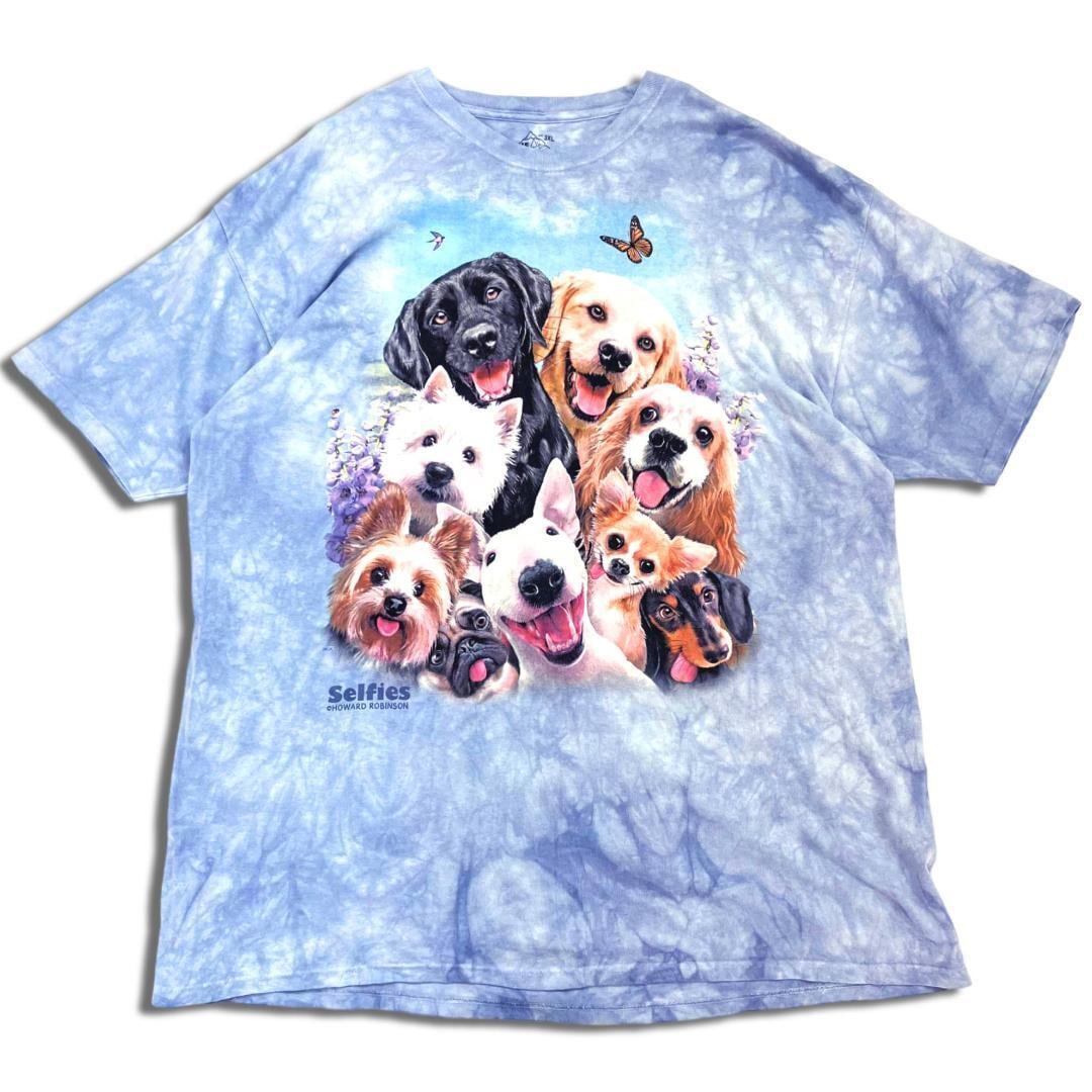 ザ マウンテン アニマル柄 イヌ柄 タイダイ染め Tシャツ 3XL ライトブルー THE MOUNTAIN ビッグサイズ オーバーサイズ 大きいサイズ 古着