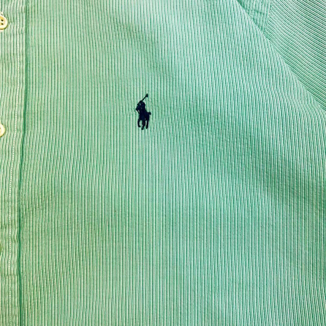 90s ポロ ラルフローレン シアサッカー 半袖シャツ L グリーン ボタンダウンシャツ POLO Ralph Laure ストライプシャツ シティーボーイ