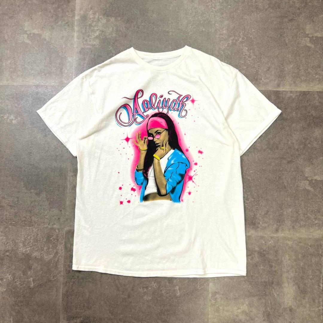 アリーヤ 半袖 Tシャツ L ホワイト Aaliyah ストリート ヒップホップ R&B ラップTシャツ RAP ミュージックTシャツ ガールズプリント 古着