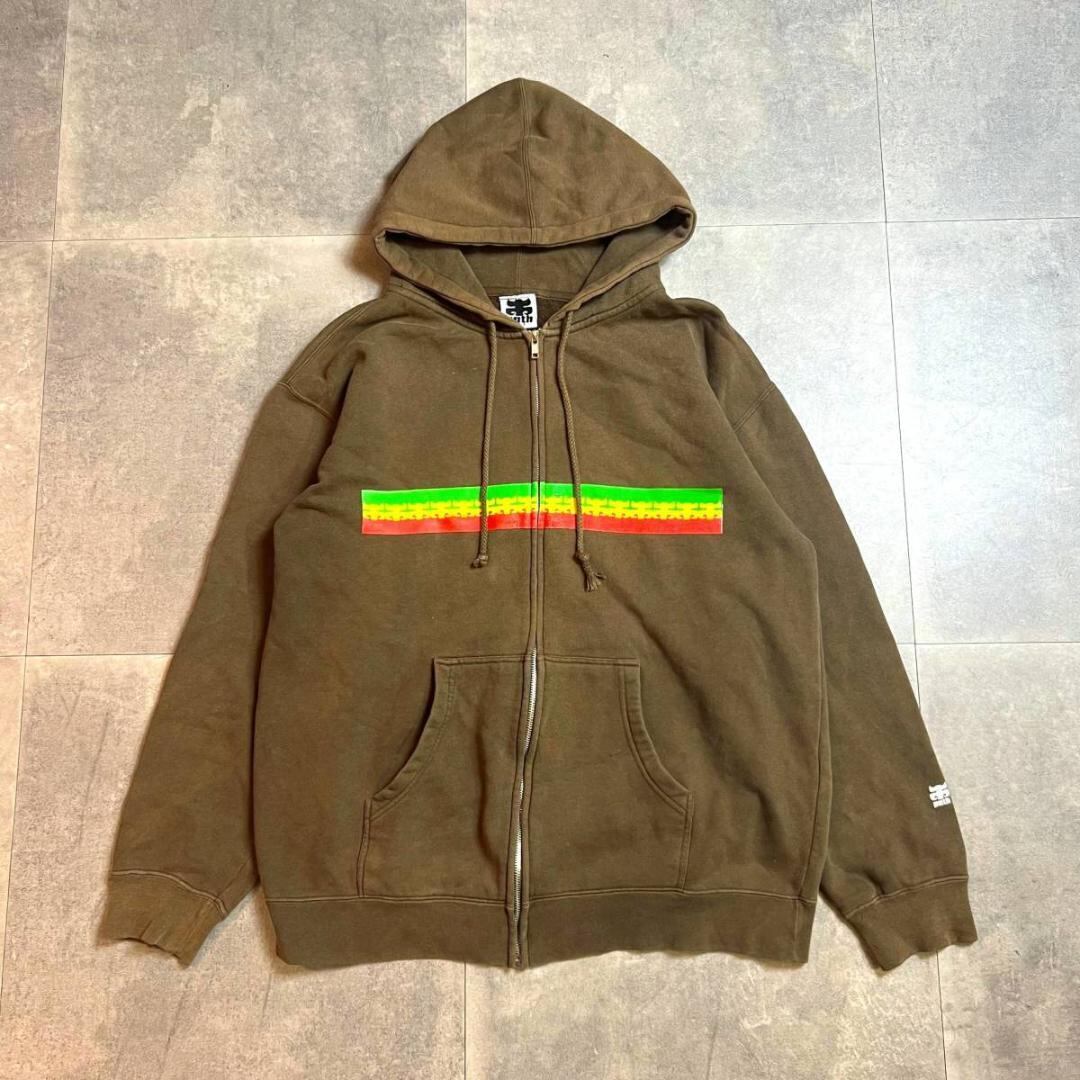 90's~00's I-Path Full Zip Hoodie In Brown&Rasta L / 90s-00s USA製 アイパス フルZIPパーカー L ブラウン フィーディ スケート古着 スケーター ストリート ラスタカラー サンフランシスコ
