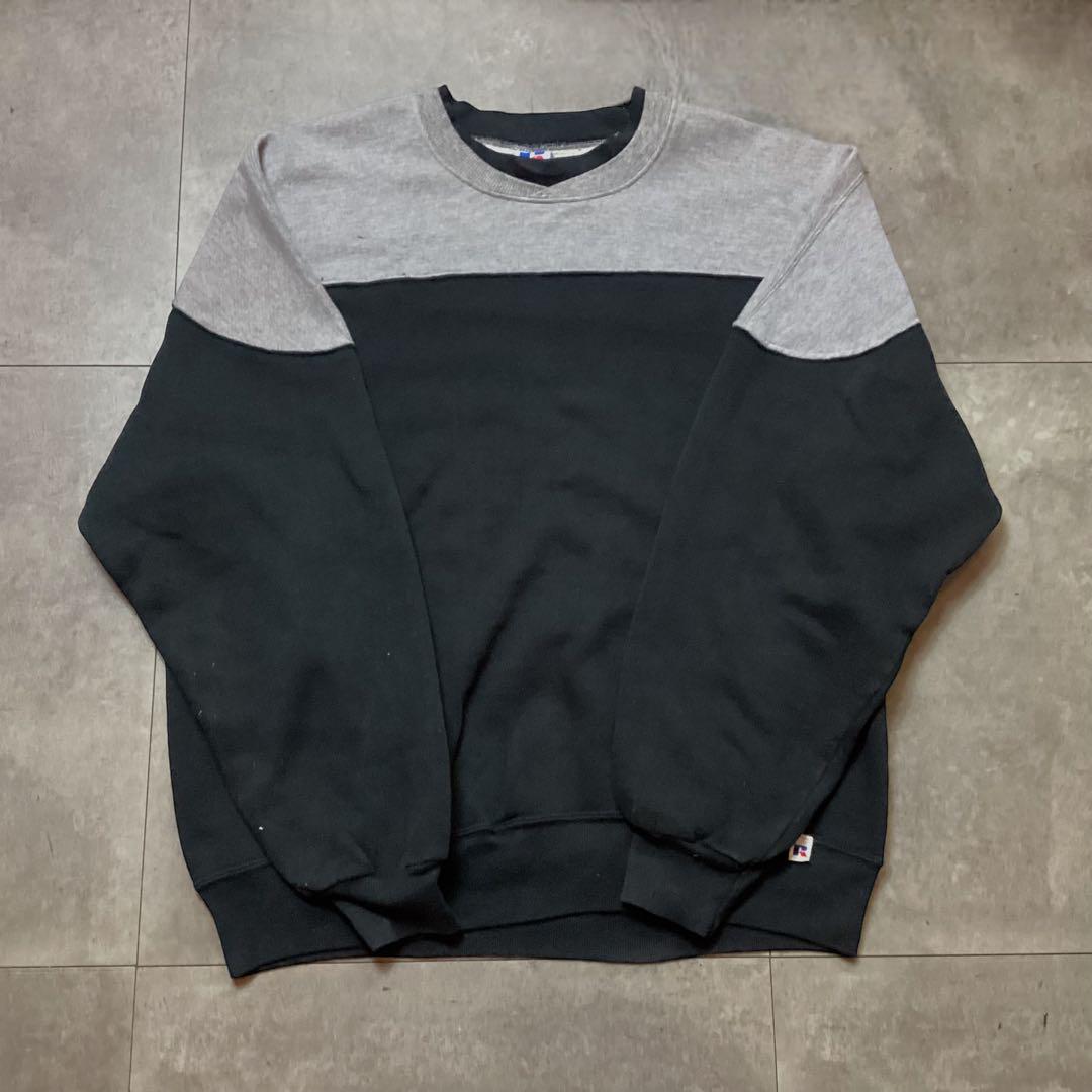 90's Made In USA Russell Athletic 50/.50 Color Blocked Crewneck Blank Sweatshirts XL In Black×Heather Grey / 90s USA製 ラッセル クルーネックスウェット グレー XL 厚手 ボックスシルエット カラーブロック 無地スウェット ブランクスウェット プレーンスウェット オーバーサイズ